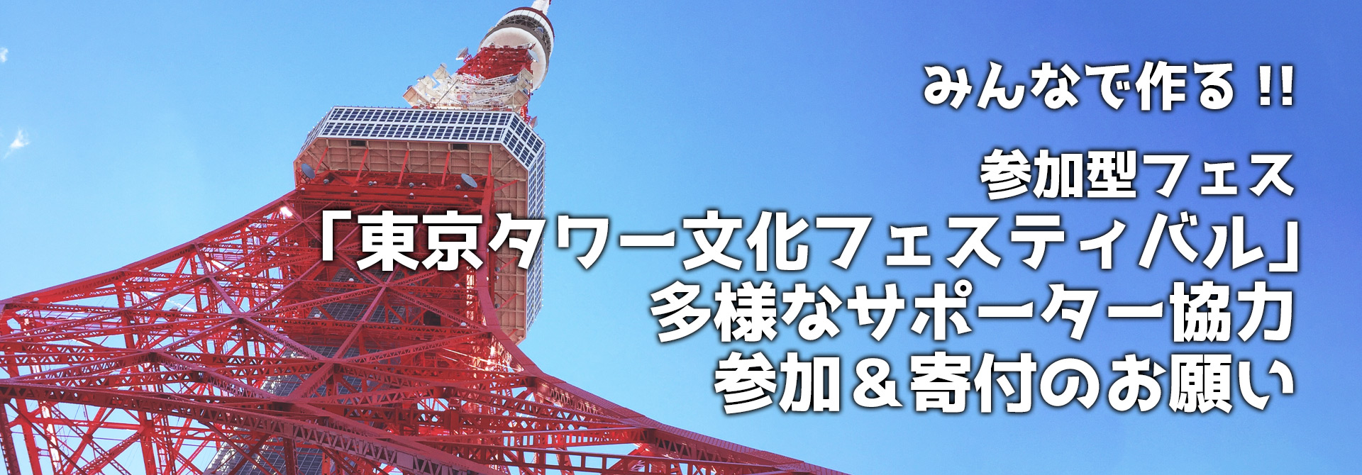 東京タワー文化フェスティバルの継続開催のために十分な運営体制が必要です。皆様のご支援をどうぞよろしくお願いいたします。なお、東京タワー文化フェスティバルは企業メセナ協議会「かるふぁん!(https://x.gd/baC69)」の認定をうけておりますので、「かるふぁん!」からのご寄付もご利用できます。