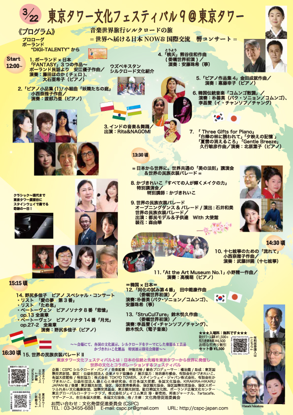 特別協力:株式会社TOKYO TOWER、スタインウェイ・ジャパン株式会社、有限会社かづきれいこ、公益財団法人顔と心と体の研究会、在日各国大使館、各国文化協会、KIRAKIRAHIKARU JAPAN他